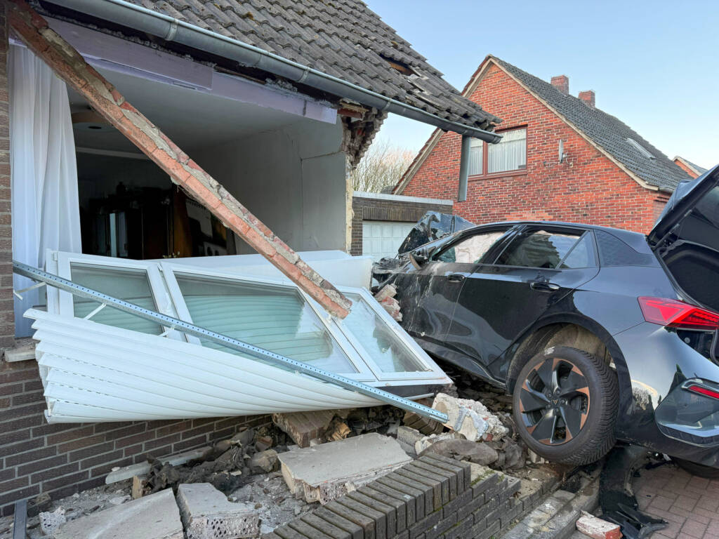 Das Fahrzeug durchbrach die Wand und kam im Wohnzimmer des Hauses zum Stehen. Zum Unfallzeitpunkt befand sich dort glücklicherweise niemand. Der Fahrer wurde leicht verletzt.