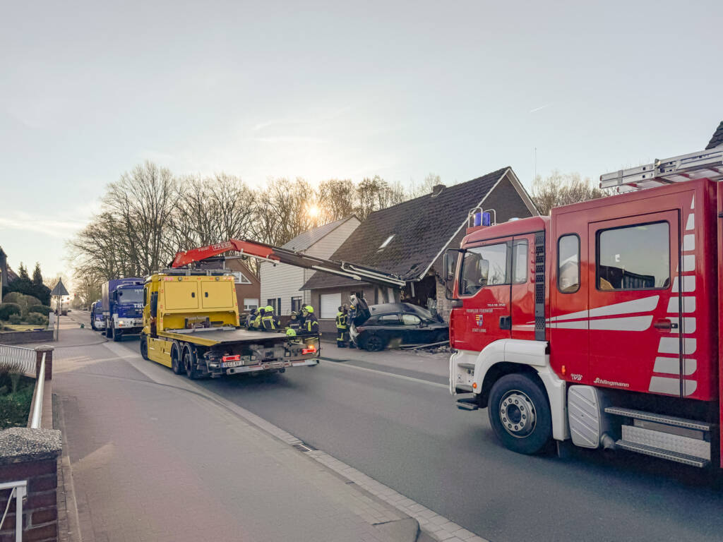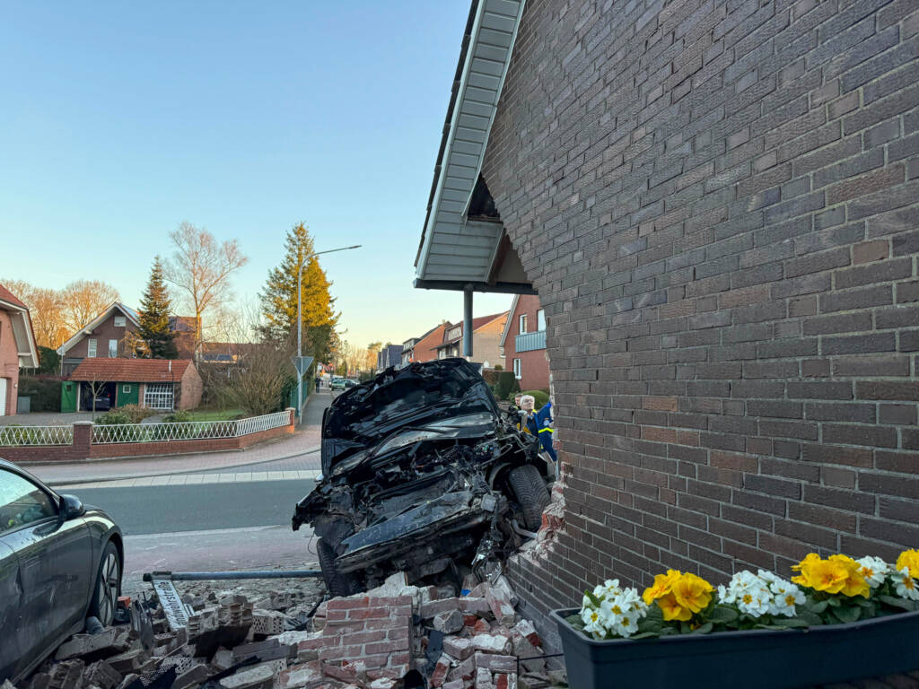 Fahrzeug prallt in Wohnhaus