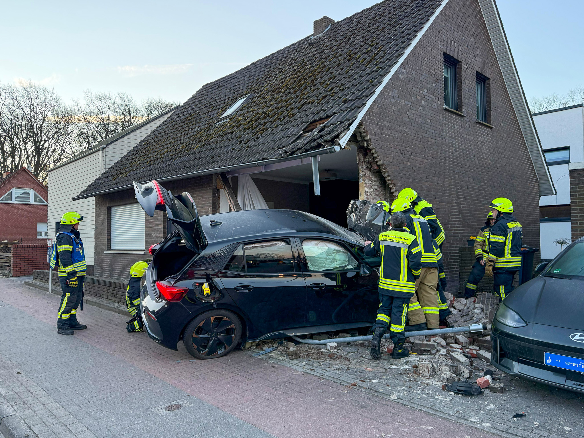 Die Feuerwehr Lohne wurde zur Sicherung der Einsatzstelle alarmiert. Aufgrund der erheblichen Beschädigungen am Gebäude wurde zusätzlich ein Baufachberater des Technisches Hilfswerk (Ortsverband Lohne) hinzugezogen, um die Statik zu beurteilen und Maßnahmen zur Gebäudesicherung einzuleiten.
