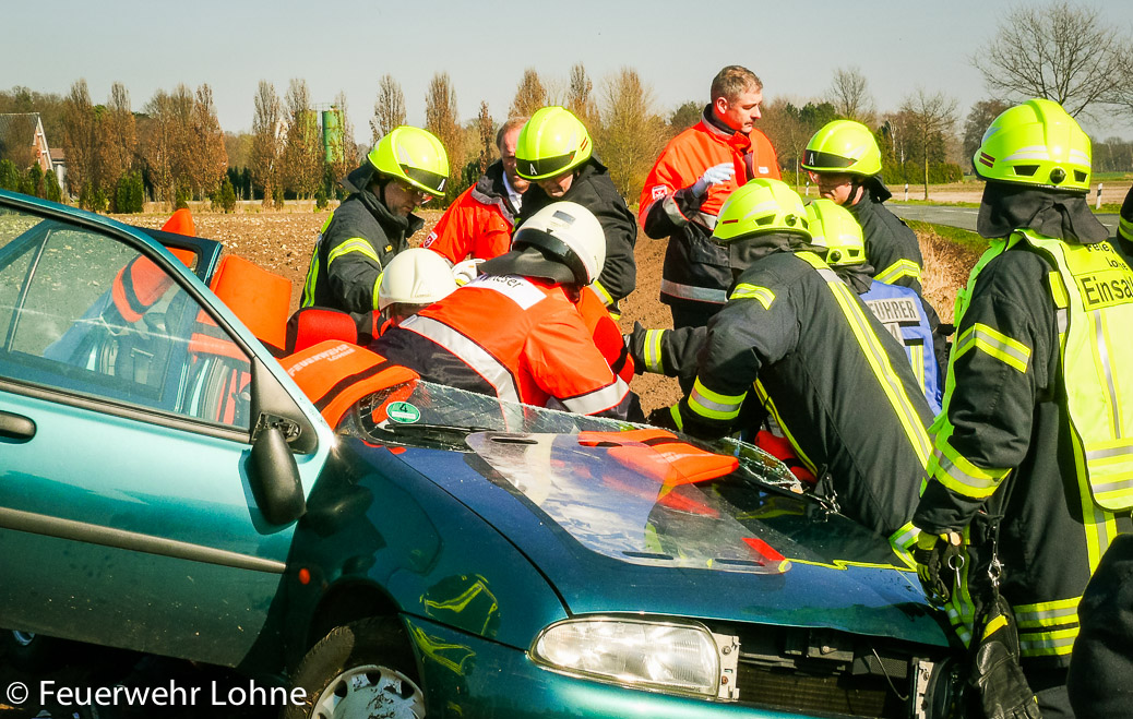 Die Feuerwehren Lohne und Brockdorf rückten mit sieben Fahrzeugen und rund 50 Einsatzkräften an und befreiten die Frau aus ihrem Wrack.